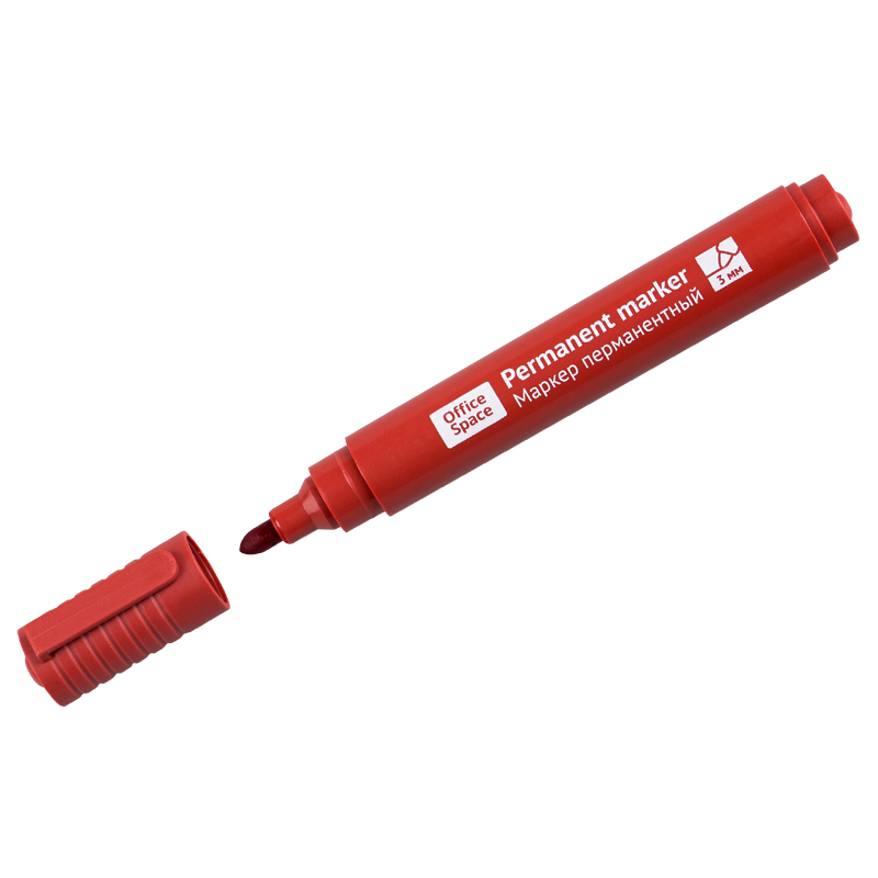 Маркер перманентный 3мм, красный, OfficeSpace 8004А, пулевидный, 265704