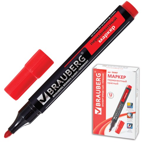 Маркер перманентный 3мм, красный, BRAUBERG "Contract", 150467