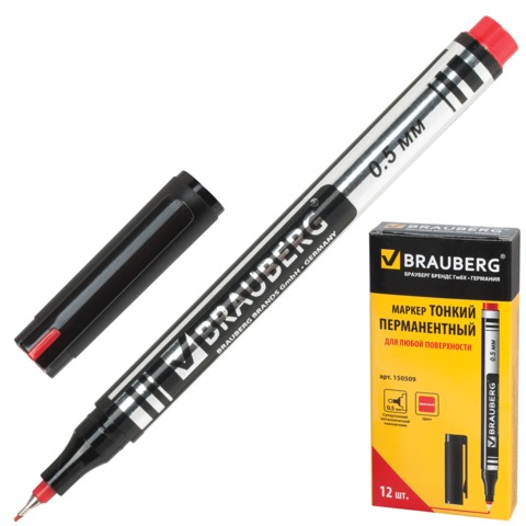 Маркер перманентный 0,5 мм, красный, метал. наконечник, BRAUBERG "Jet" /24/ 150509