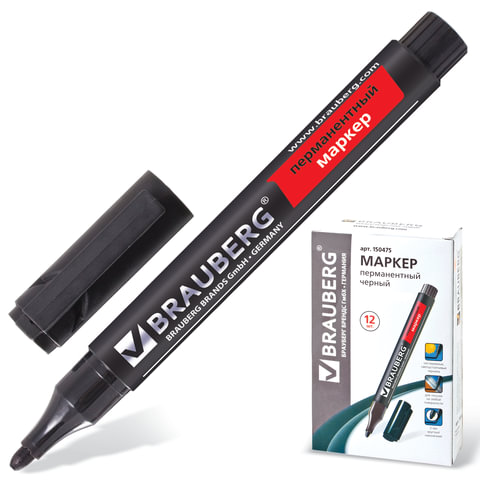 Маркер перманентный 3мм, черный, BRAUBERG "Energy" /24/ 150475