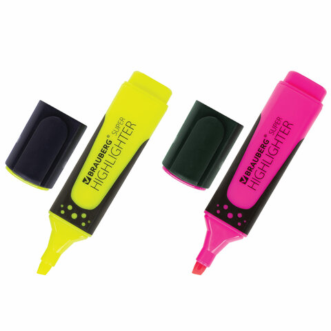 Набор текстмаркеров BRAUBERG 2шт, 1-5мм, желтый/розовый, 151745