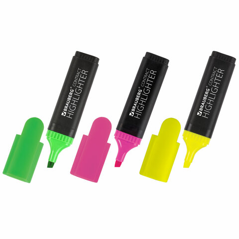 Набор текстмаркеров BRAUBERG "Contract", 1-5мм, 3 цвета, 150395