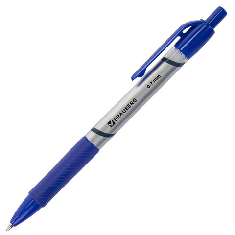 Ручка автоматическая шариковая синяя BRAUBERG "Leader", грип, линия письма 0,35мм, 141540