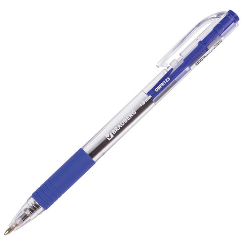 Ручка автоматическая масляная синяя BRAUBERG "Click", резовый грип, линия письма 0,5мм, 142702