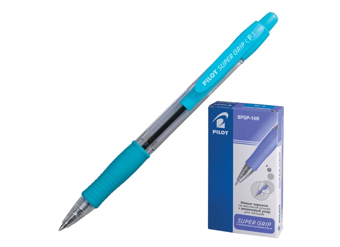 ОписаниеКлассическая шариковая автоматическая ручка PILOT "Super Grip" поставляется в классическом круглом корпусе из прозрачного пластика с голубыми деталями.