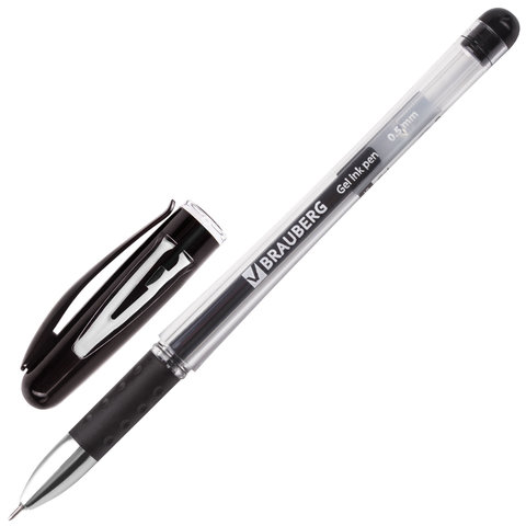 Ручка гелевая черная BRAUBERG "Geller", резиновый грип, линия письма 0,35мм, 141180