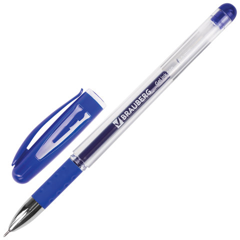 Ручка гелевая синяя BRAUBERG "Geller", резиновый грип, линия письма 0,35мм, 141179