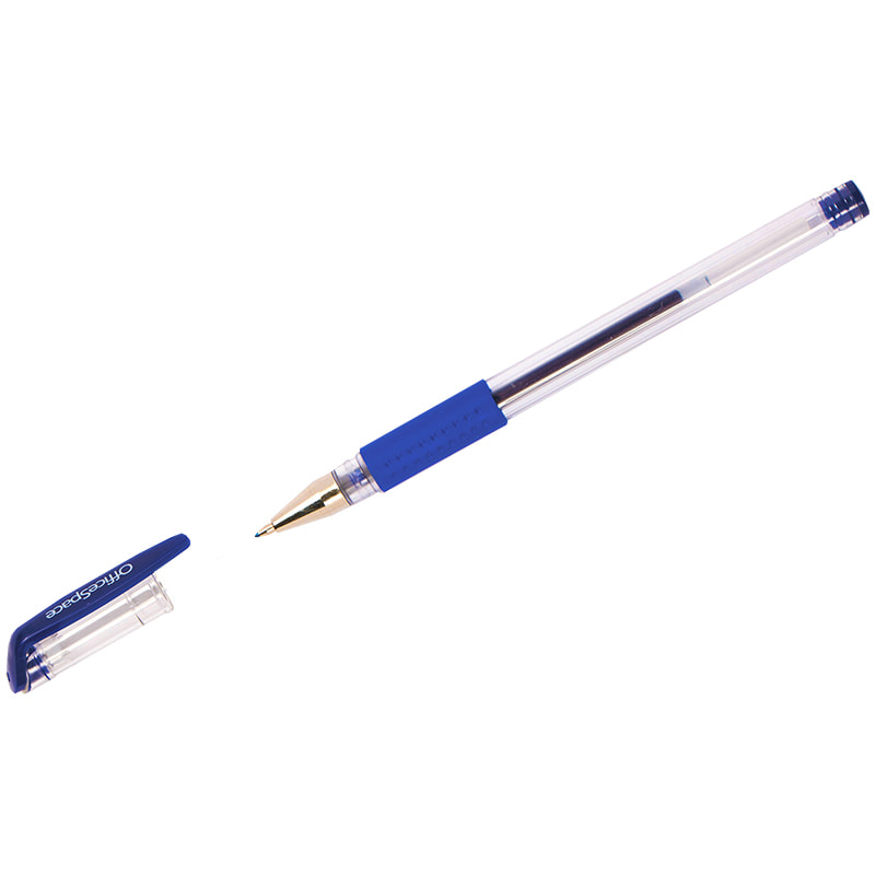 Ручка гелевая синяя OfficeSpace, резиновый грип, 0,5мм, 241088
