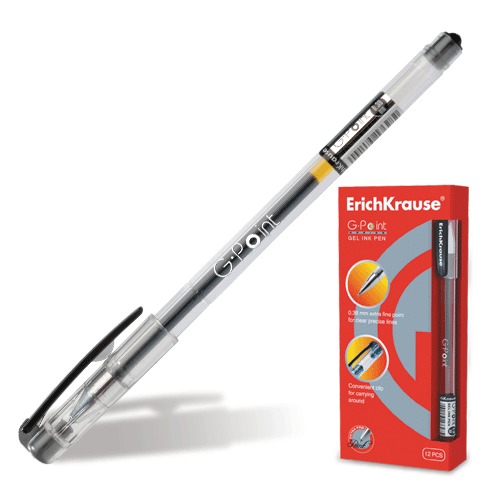 Ручка гелевая черная ErichKrause "G-POINT", 0,38мм, игольчатый узел, 093022
