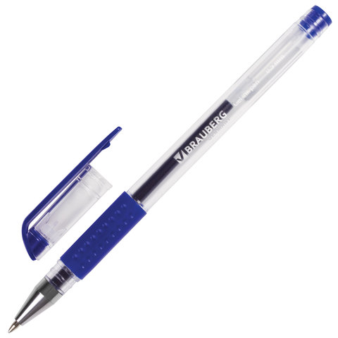 Ручка гелевая синяя BRAUBERG "Number One", резиновый грип, линия письма 0,35мм, 141193