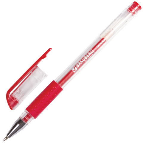 Ручка гелевая красная BRAUBERG "Number One", резиновый грип, линия письма 0,35мм, 141195