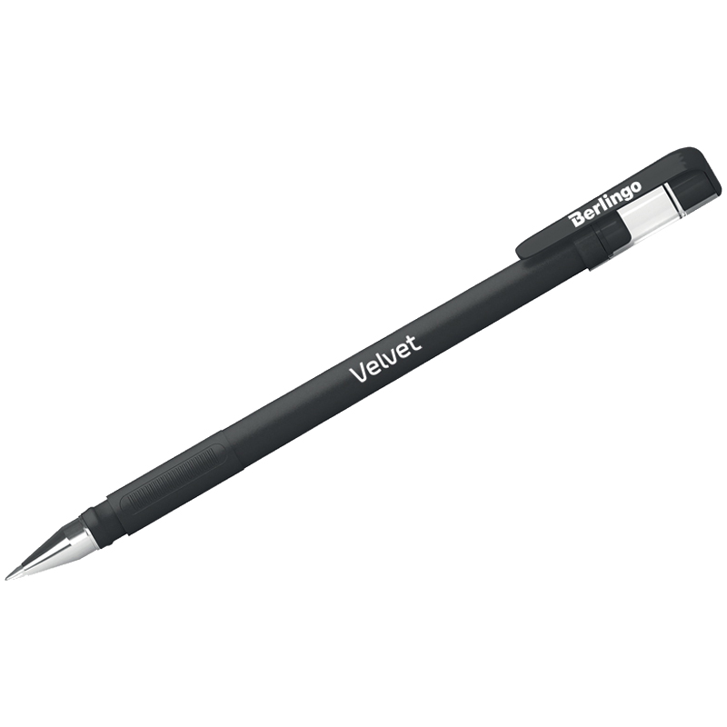 Ручка гелевая черная Berlingo "Velvet", прорезиненный корпус, линия письма 0,4мм, 243042