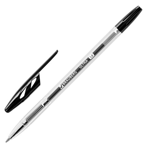 Ручка шариковая черная BRAUBERG "ULTRA", корпус прозрачный, линия письма 0,35мм, 143559