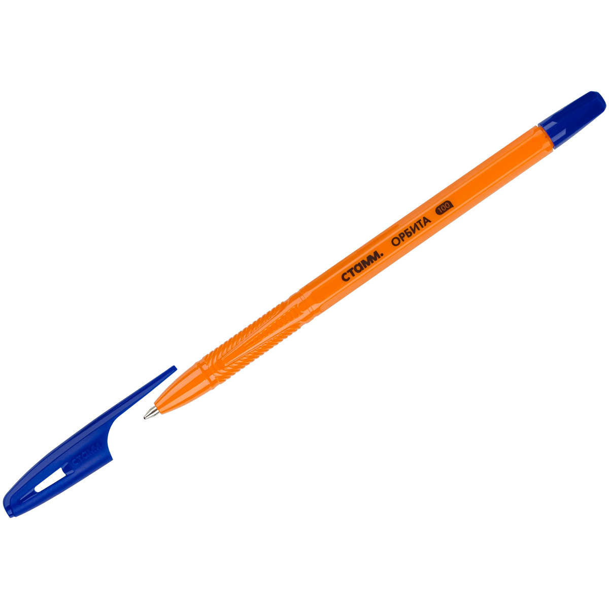 Ручка шариковая синяя СТАММ "Орбита 100", корпус оранжевый, линия письма 0,5мм, 370168