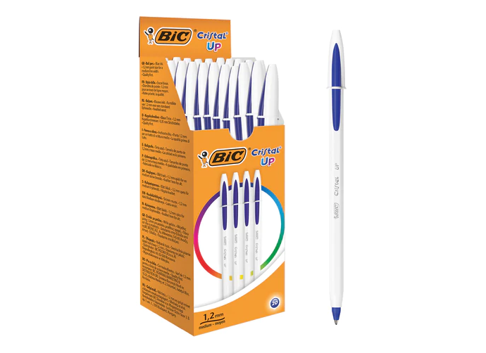 ОписаниеОдноразовая шариковая ручка BIC "Cristal UP" с увеличенным объёмом чернил синего цвета. Длина письма – до 3000 м. Корпус сделан из высококачественного пластика белого цвета с деталями в цвет чернил.