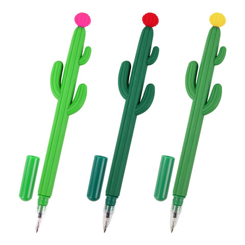 Ручка шариковая синяя ЮНЛАНДИЯ "Кактус", линия письма 0,35мм, 143774