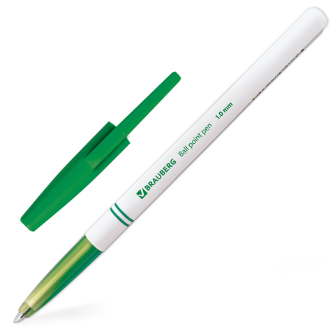 Ручка шариковая зеленая BRAUBERG "Офисная", корпус белый, линия письма 0,5мм, 141511