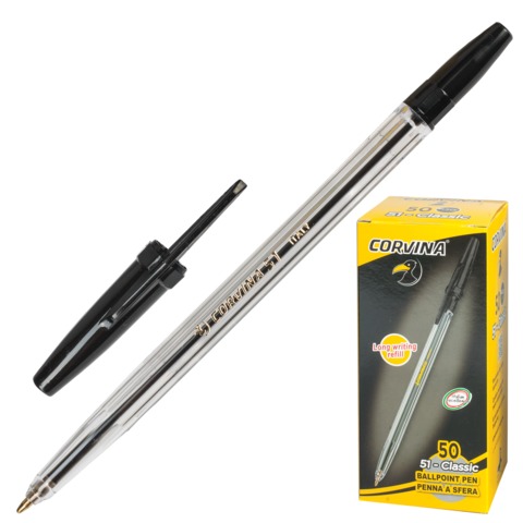 Ручка шариковая черная Corvina "51 Classic", линия письма 0,7мм, 140301