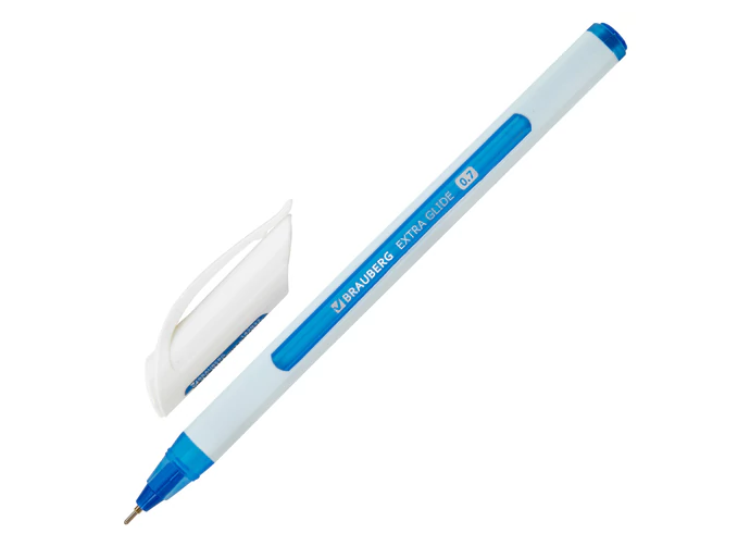 Ручка масляная синяя BRAUBERG "Extra Glide Soft White", линия письма 0,35мм /24/ 142927