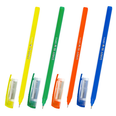 Ручка масляная синяя STAFF "Basic OBP-312", корпус ассорти, линия письма 0,35мм, 143012