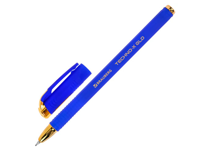 Ручка масляная синяя BRAUBERG "Techno-X GLD", линия письма 0,35мм, синий, 144223