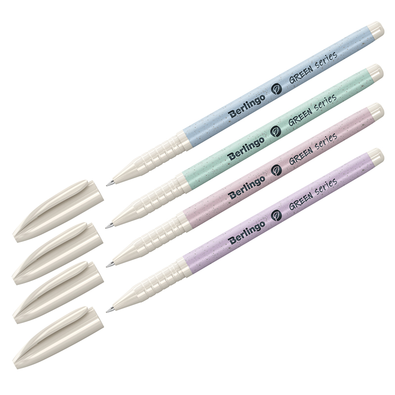 Ручка масляная синяя Berlingo "Green Series", корпус ассорти, линия письма 0,5мм, 333043