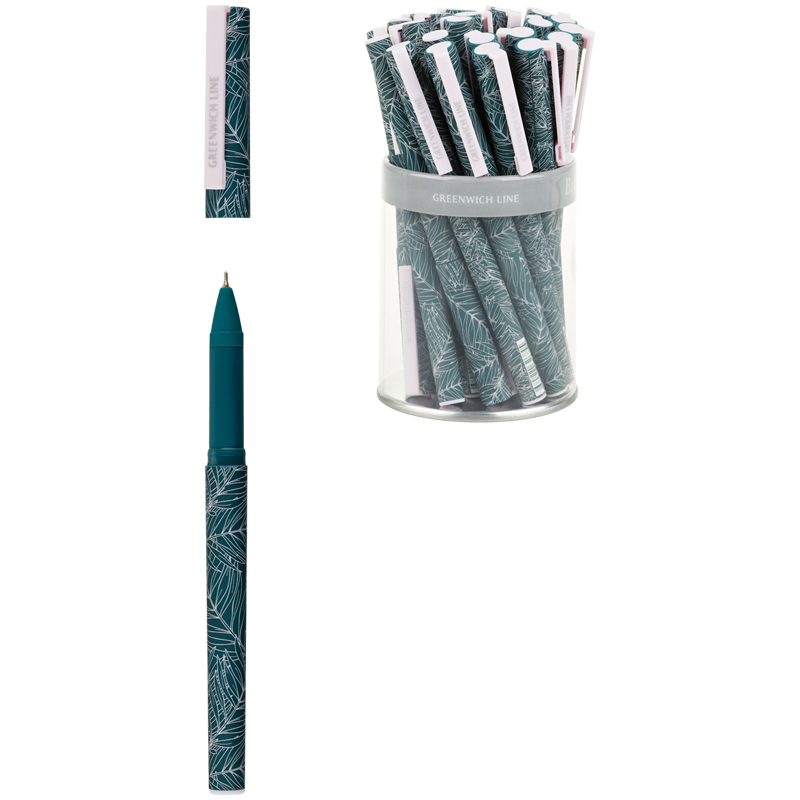Ручка масляная синяя Greenwich Line "Pink leaves", игол. стержень 0,7мм, грип/софт-тач, 309325