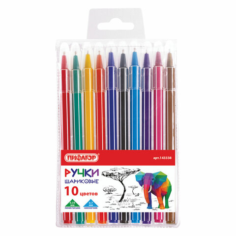 Набор ручек шариковых 10 цветов ПИФАГОР "Веселые зверята", линия письма 0,35мм, 143338