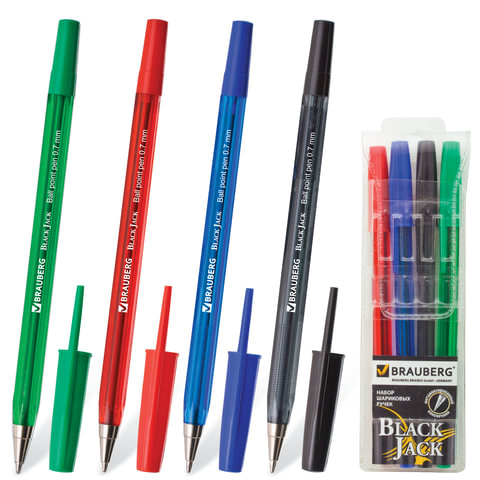Набор ручек шариковых 4 цвета BRAUBERG "Black Jack", линия письма 0,35мм, 141290