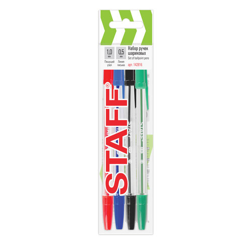 Набор ручек шариковых 4 цвета STAFF "C-51", линия письма 0,5мм, 142816