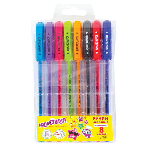 Набор ручек масляных 08 цветов ЮНЛАНДИЯ "STAR", линия письма 0,35мм, 143011