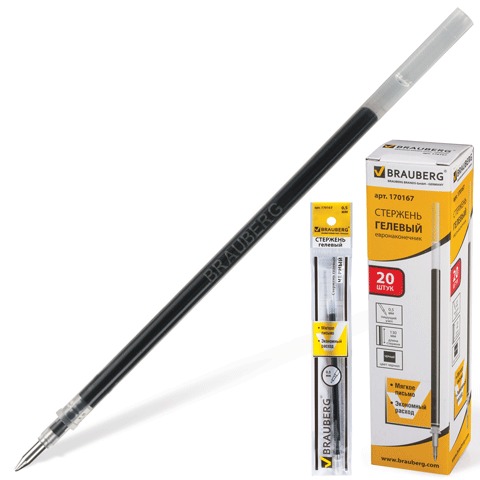 Стержень гелевый 130мм, черный, BRAUBERG, линия письма 0,35мм /60/ 170167