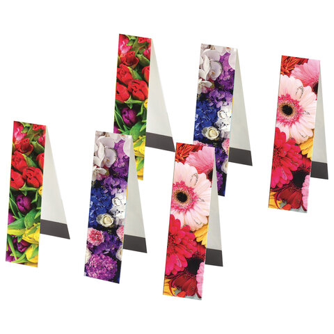 Закладки для книг с магнитом ЦВЕТЫ, 6шт/упак, блестки, 25x196мм, ЮНЛАНДИЯ, 129618