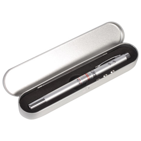 Указка лазерная в футляре, радиус 200м, красный луч (LED-фонарь, указка, магнит, ручка), 236947