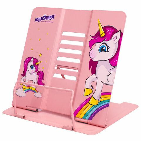 Подставка для книг ЮНЛАНДИЯ "Neon Unicorn", розовая, регулируемый наклон, металлическая, 237575