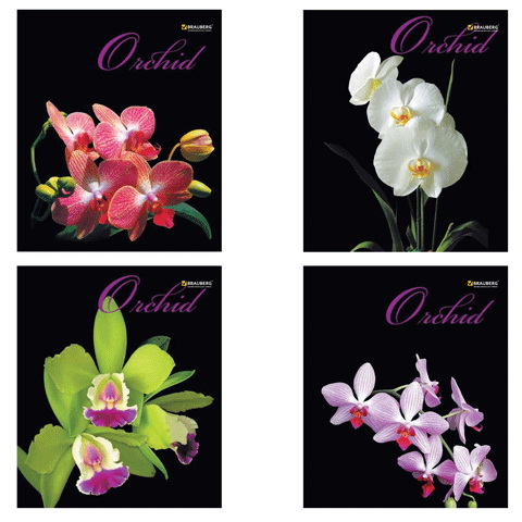 Тетрадь 48л. А5, клетка, скрепка, BRAUBERG "Орхидеи", ассорти 4 вида /20/ 401287