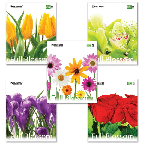 Тетрадь 96л. А5, клетка, скрепка, BRAUBERG "Цветы", ассорти 5 видов, 401845