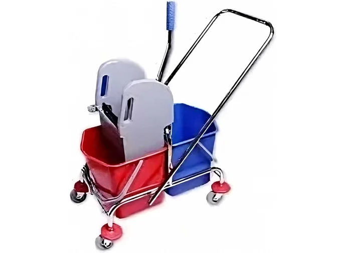 Тележка оснащена надежными ведрами с пластиковыми ручками, цвет ведер синий и красный, объем каждого ведра 5 галлонов имеются шкалы уровня внутри каждого ведра. - Отзывы