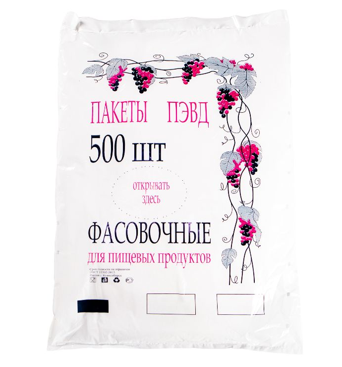Пакет фасовочный ПВД 24*37 30мкм 500шт/упак, планшет, Виноград