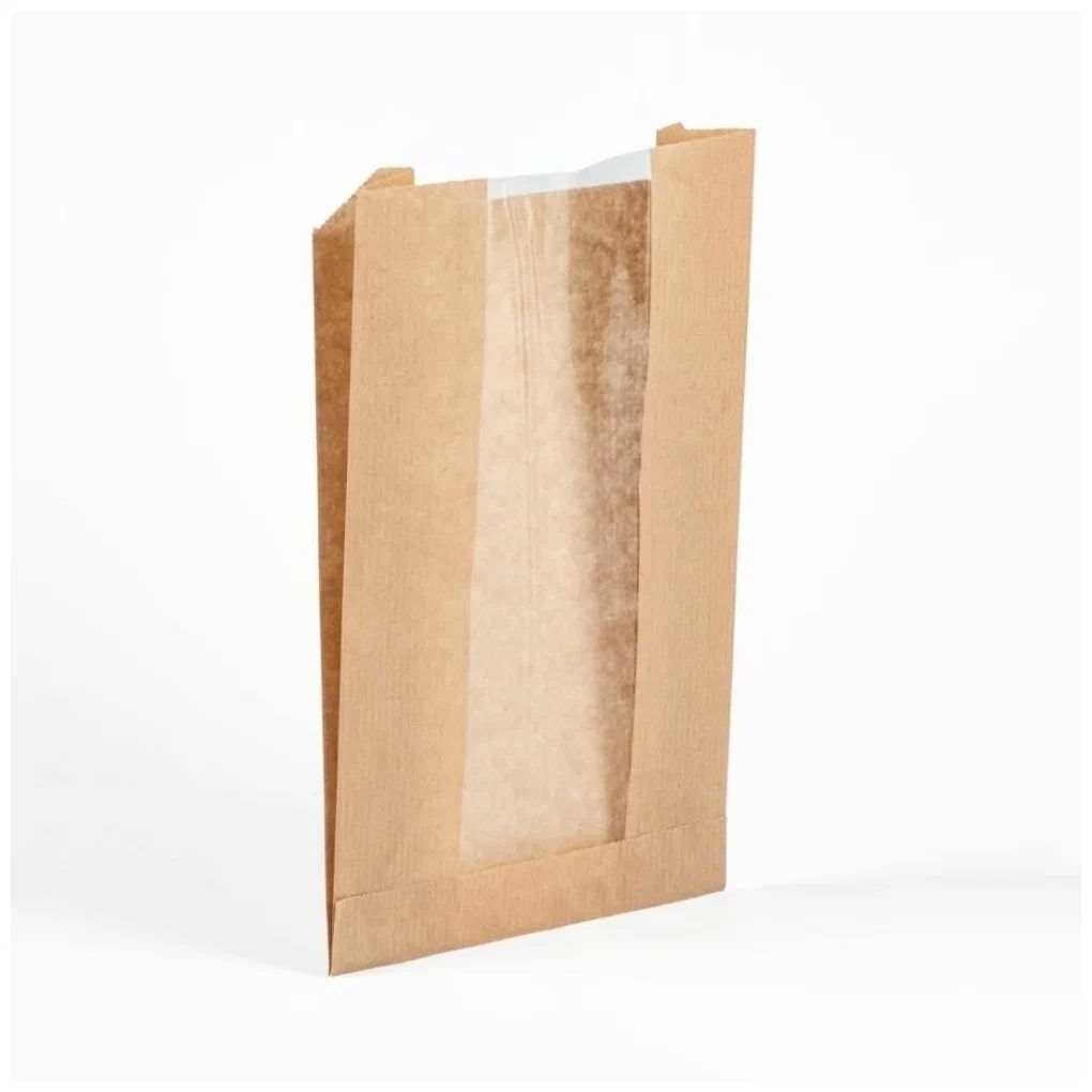 Пакет бумажный V-дно с окном 150*80*270, крафт /1000/