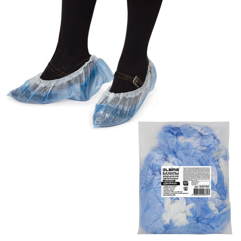 Бахилы с двойной стелькой п/э "Laima", 40 мкм, 50 пар/упак