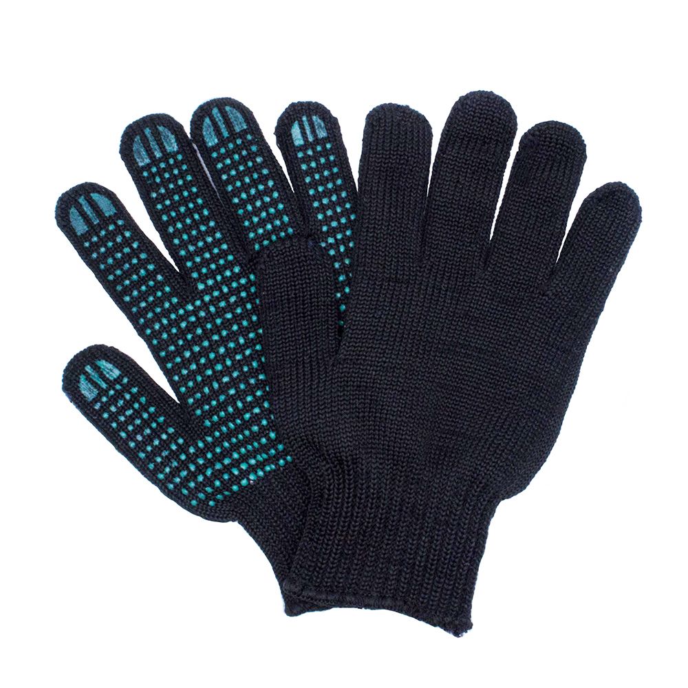 Перчатки хб ПВХ 6 нитей 7,5кл, двойной оверлог, плотные, черные /300/ ПТК