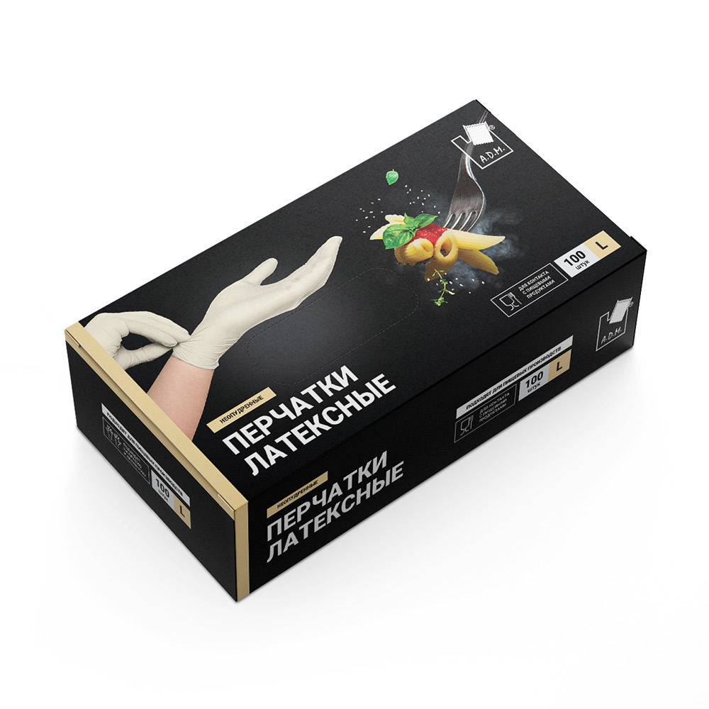 Перчатки латексные бежевые, L, неопудренные, текстур. на ладони, 50пар/упак /10/ ADM, 15794