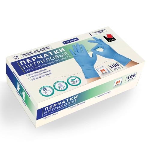 Перчатки нитриловые голубые, M, 50 пар/упак /10/ неопудренные, ADM, 14853