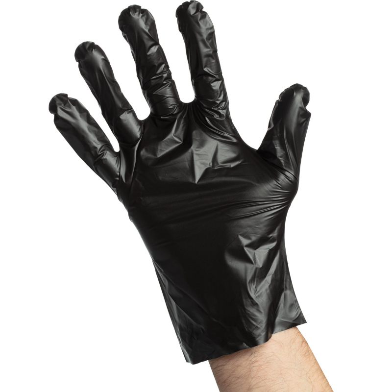 Перчатки п/э ЭЛАСТОМЕР L, 50пар/упак, СРЕ, черные, 15938