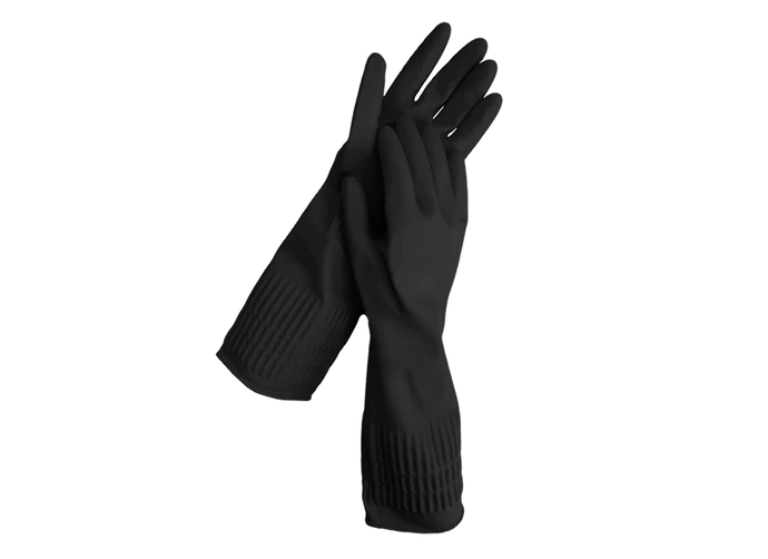 Перчатки резиновые черные, L, Перчатки резиновые черные, L, удлиненная манжета 25 см, LAIMA 80 г., 700532