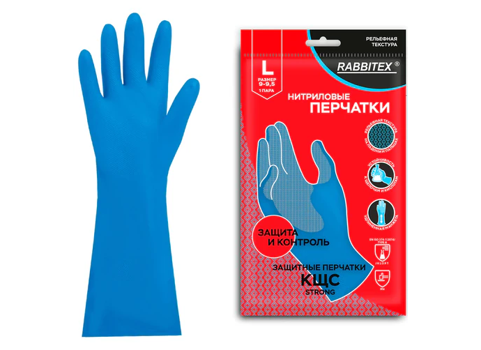 Перчатки КЩС, р-р L (9-9,5), синие RABBITEX, 700908