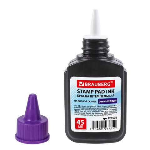 Краска штемпельная 45мл, фиолетовая, BRAUBERG, на водной основе, 223596