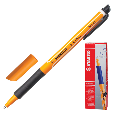 Ручка гелевая черная STABILO "PointVisco", корпус оранжевый, резин. грип, линия письма 0,5мм, 142129
