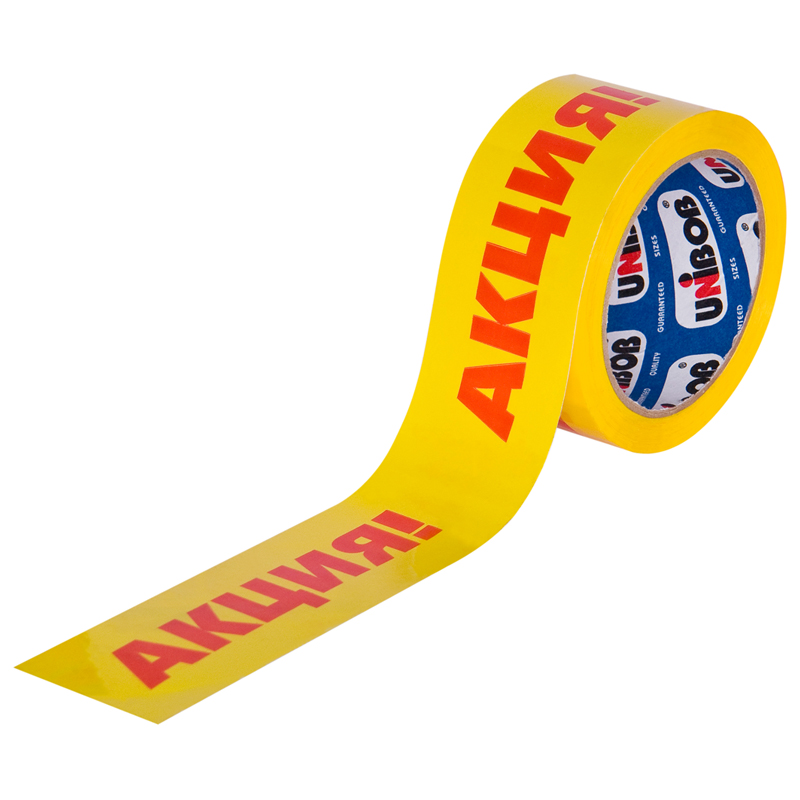 Скотч желтый 50мм*66м, 47мкм, логотип "АКЦИЯ!", UNIBOB, 298599